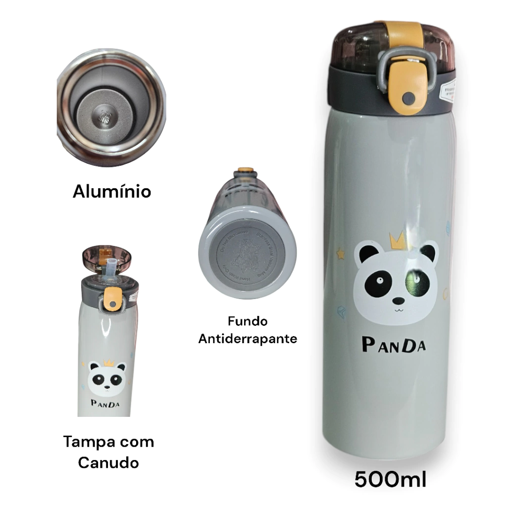 Transforme a forma como seus filhos se hidratam com a Garrafa Térmica Infantil em Alumínio com Canudo Antivazamento Panda 500ml! Um produto que não só atende às necessidades de hidratação, mas também encanta pela sua estética lúdica.